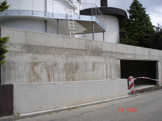 Sichtbetonmauer mit Struktur Tiefgang unter bestehendem Wohnhaus in Vallendar